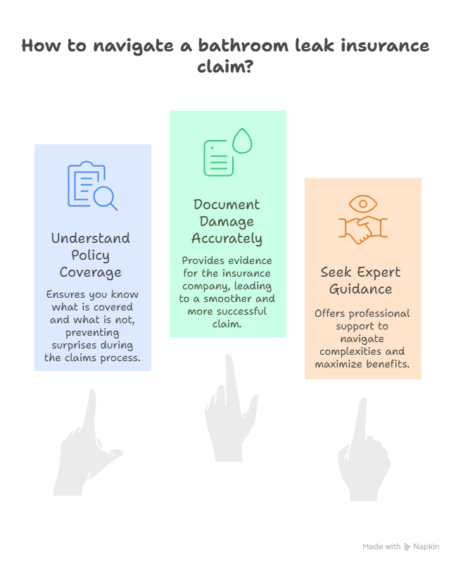 One of the most common (and the most expensive) kinds of damage to household water is a bathroom leak. It may be a shower that leaks, a bursting pipe underneath the sink, or a leakage in a pipe that is behind the wall; the consequences can be daunting. A bathroom leak insurance claim can be used to assist in repairing the leak, but it does not always go smoothly. It is important to know how to ensure insurance companies assess water damage, what is and what is not covered, and how to report your loss so that you can get paid.